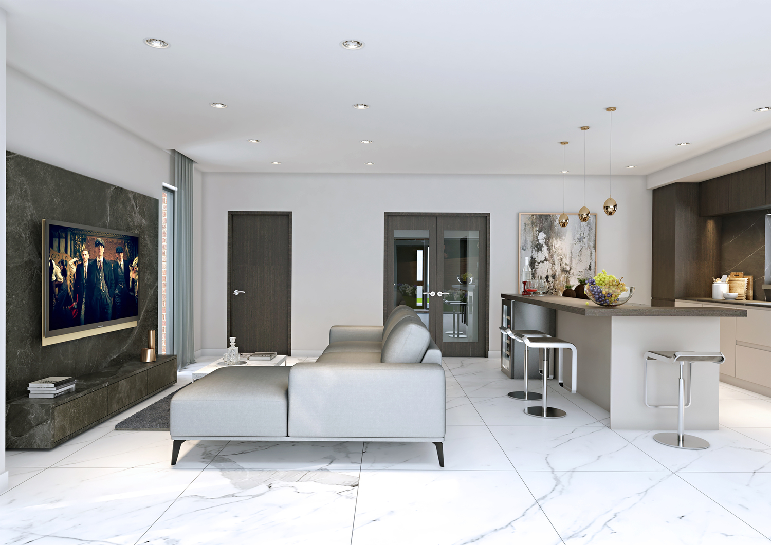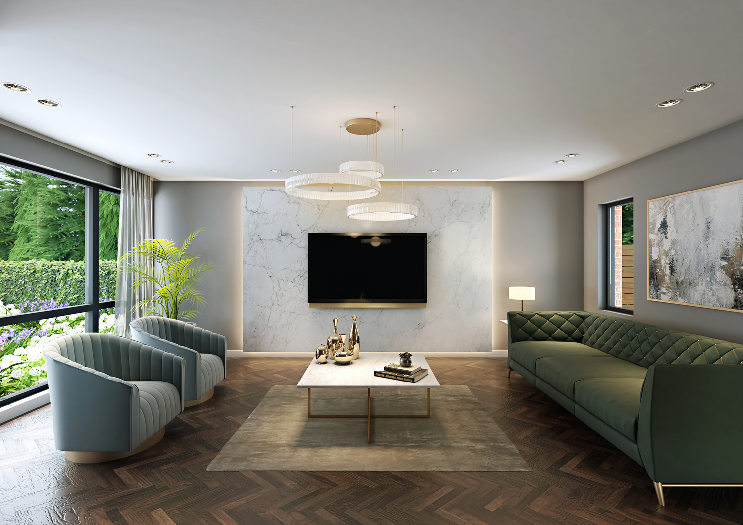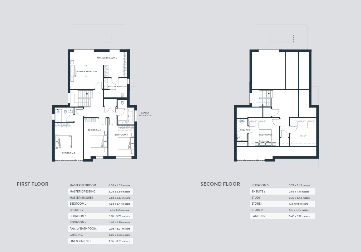 Each new detached home consists of 5 bedrooms, 5 bathrooms, master bedroom with ensuite, separate dressing area, magnificent open plan kitchen and dining area with family room, living room, utility room and an office. The home also has a large garage, whilst the external areas boasts a large private front and back garden, beautifully landscaped for the discerning client. Each property is approximately 3,000 sq ft not including the garage.